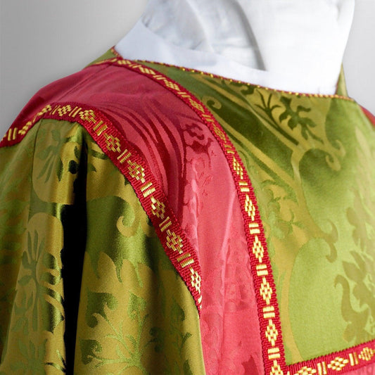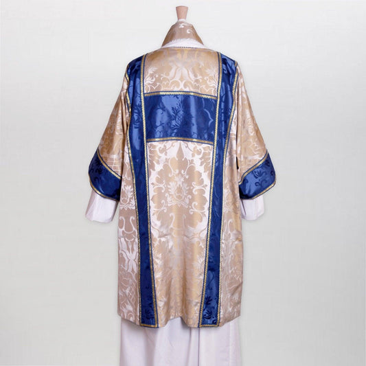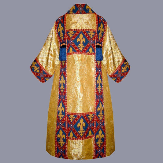 Our bespoke dalmatics & tunicles are handmade in our London showroom, using our exclusive fabrics and trims. Feel free to explore the vestments below for inspiration towards your next bespoke commission, including previous embroideries and a variety of fabric combinations.