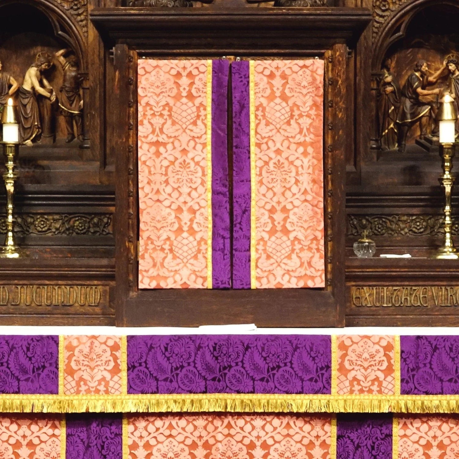 Handcrafted in our workroom to fit your altar perfectly. We offer a wide range of styles, fully customisable with our exclusive fabrics and trims. Get in touch to find out more.