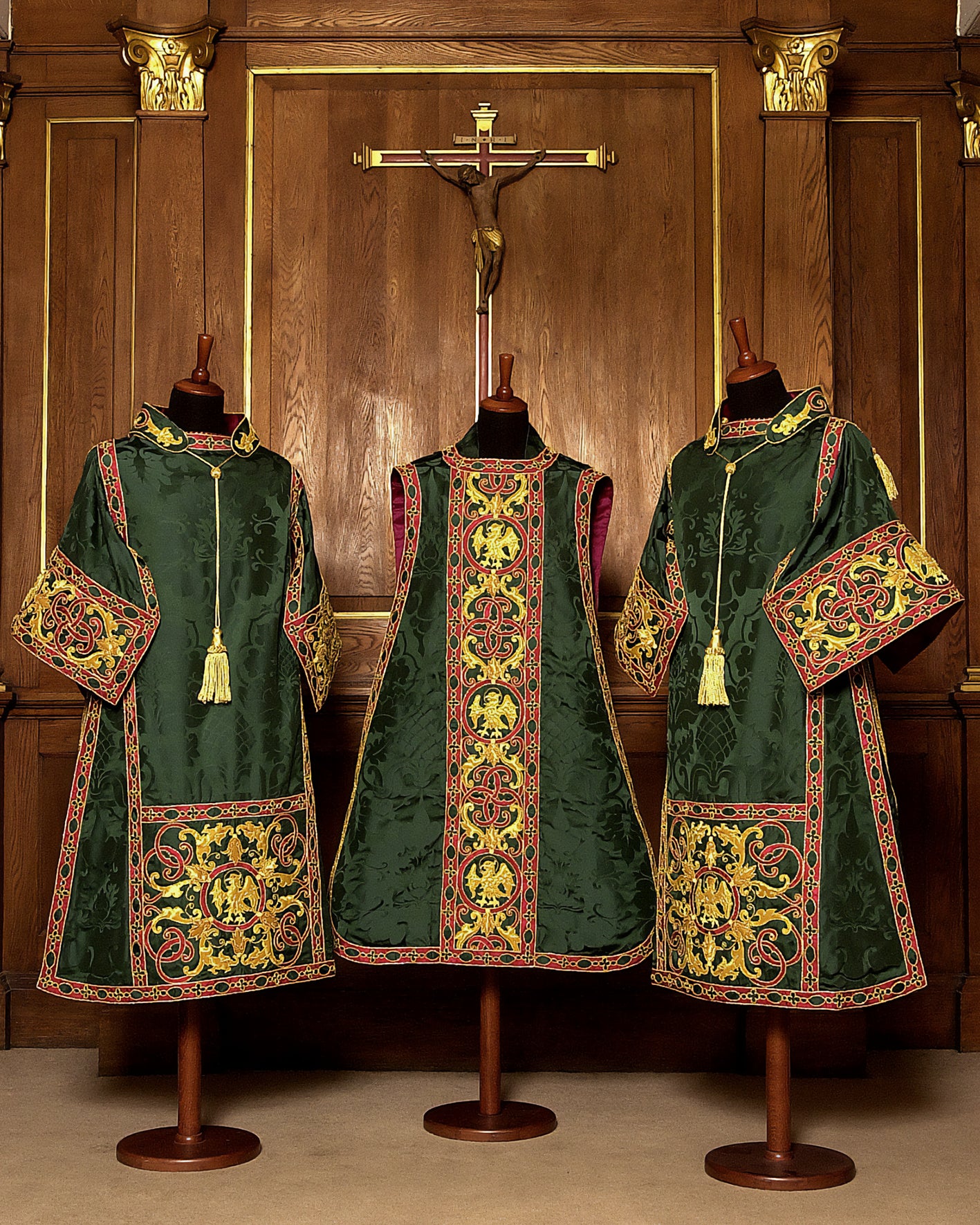 All bespoke vestments are handmade in our London showroom, using our exclusive fabrics and trimmings. Book a vestment consultation with us to begin the design process, or browse our range of handcrafted samples which are available to purchase straight away.