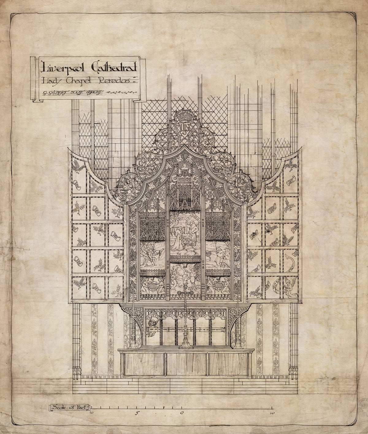 Sketch for the reredos in the Lady Chapel at Liverpool Cathedral.
