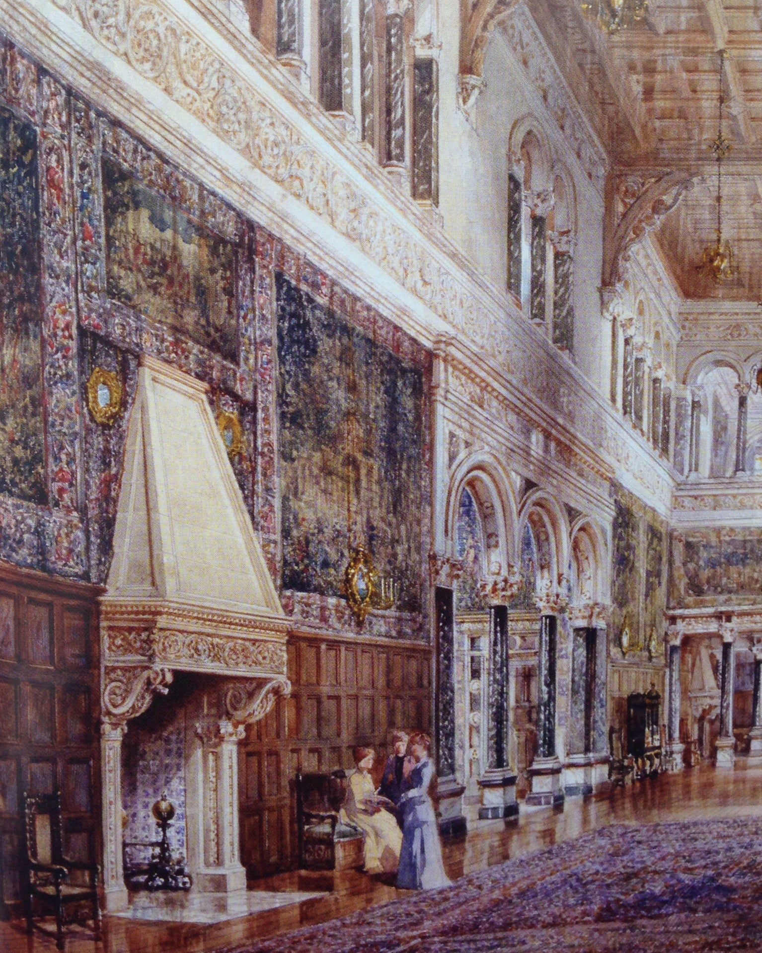 The Great Hall, Hewell Grange, designed by Thomas Garner. Watercolour by H. W. Brewer, 1892.