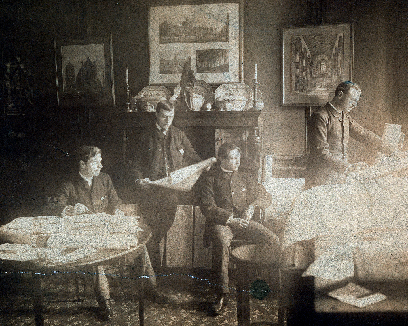Bodley began his architectural career in the office of the eminent Victorian architect, Sir George Gilbert Scott (his sister had married Samuel Scott, brother of Sir George). However, his creative instincts soon diverged. Rather than looking solely to the Gothic past, he sought to reinterpret it for a modern age, while taking inspiration from early English Gothic style. In 1869 he formed a partnership with Thomas Garner, and together they designed and restored churches, houses, and major collegiate buildings at Oxford and Cambridge.