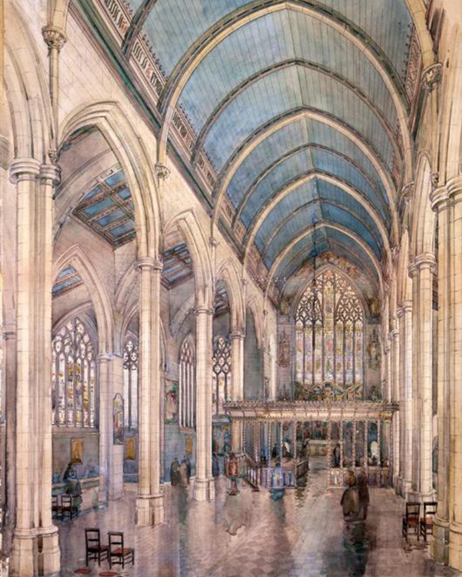 Bodley's Holy Trinity Interior. Watercolour by H.C. Brewer, 1901.