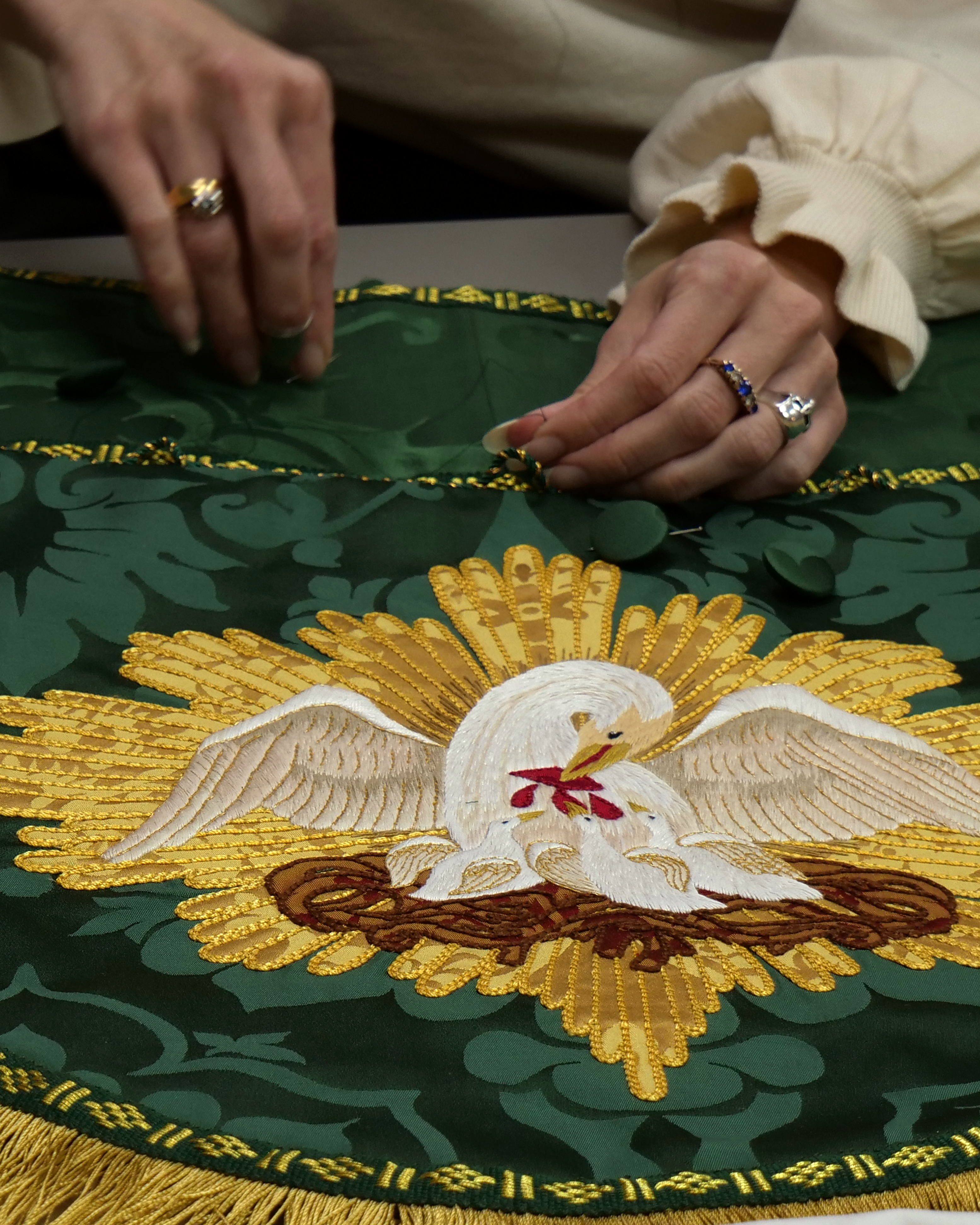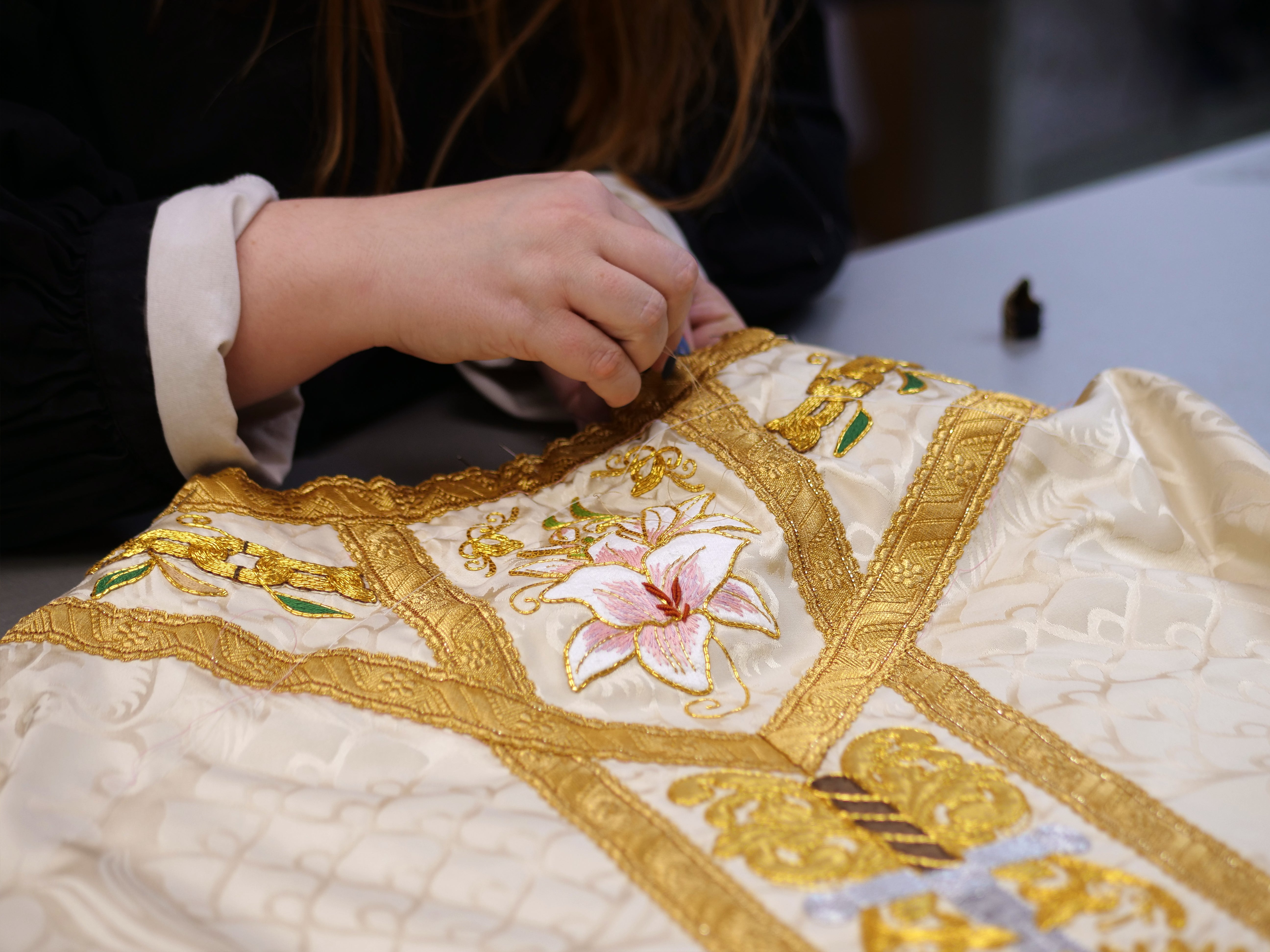 Discover our full selection of sample vestments, featuring our iconic silk damasks and unique hand-embroidered designs.