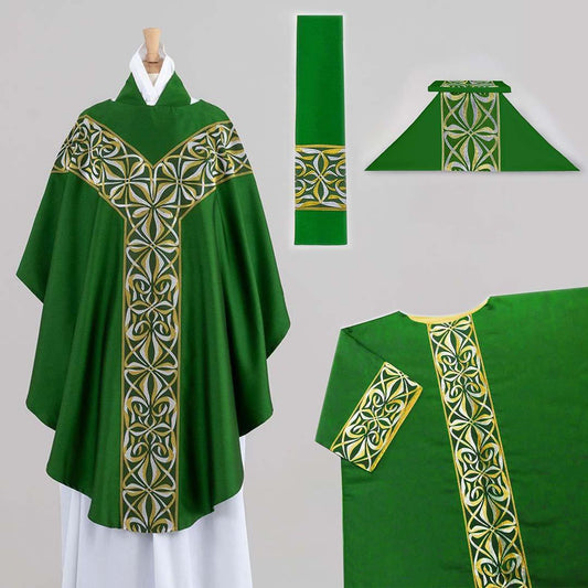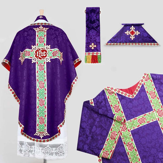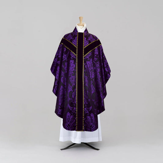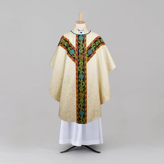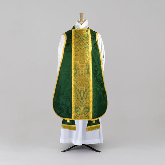 For the more solemn celebration of the Mass on special feast days and holy days, we offer our High Mass sets to match a growing selection of our popular stock ranges of chasubles. Our standard High Mass sets come with chasuble and stole, burse and veil, dalmatic and diaconal stole, and tunicle. A coordinating cope and humeral veil is also available for each range.