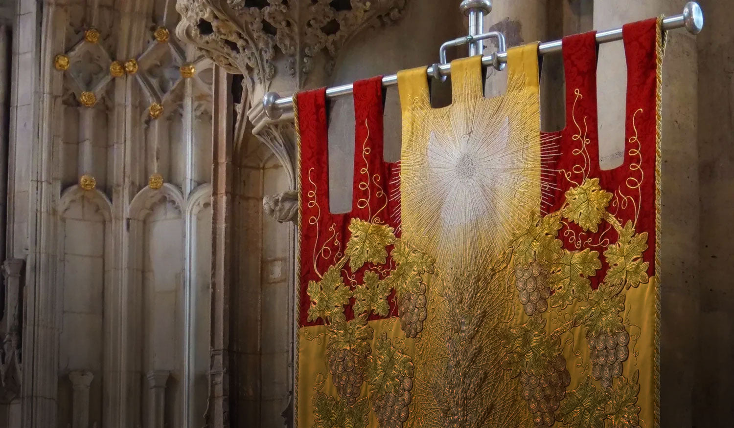 Watts are experts in the design and creation of unique banners for processions, customisable with saints, symbols and wording in hand-embroidery. We also offer restorations and reproduction of historical banners.