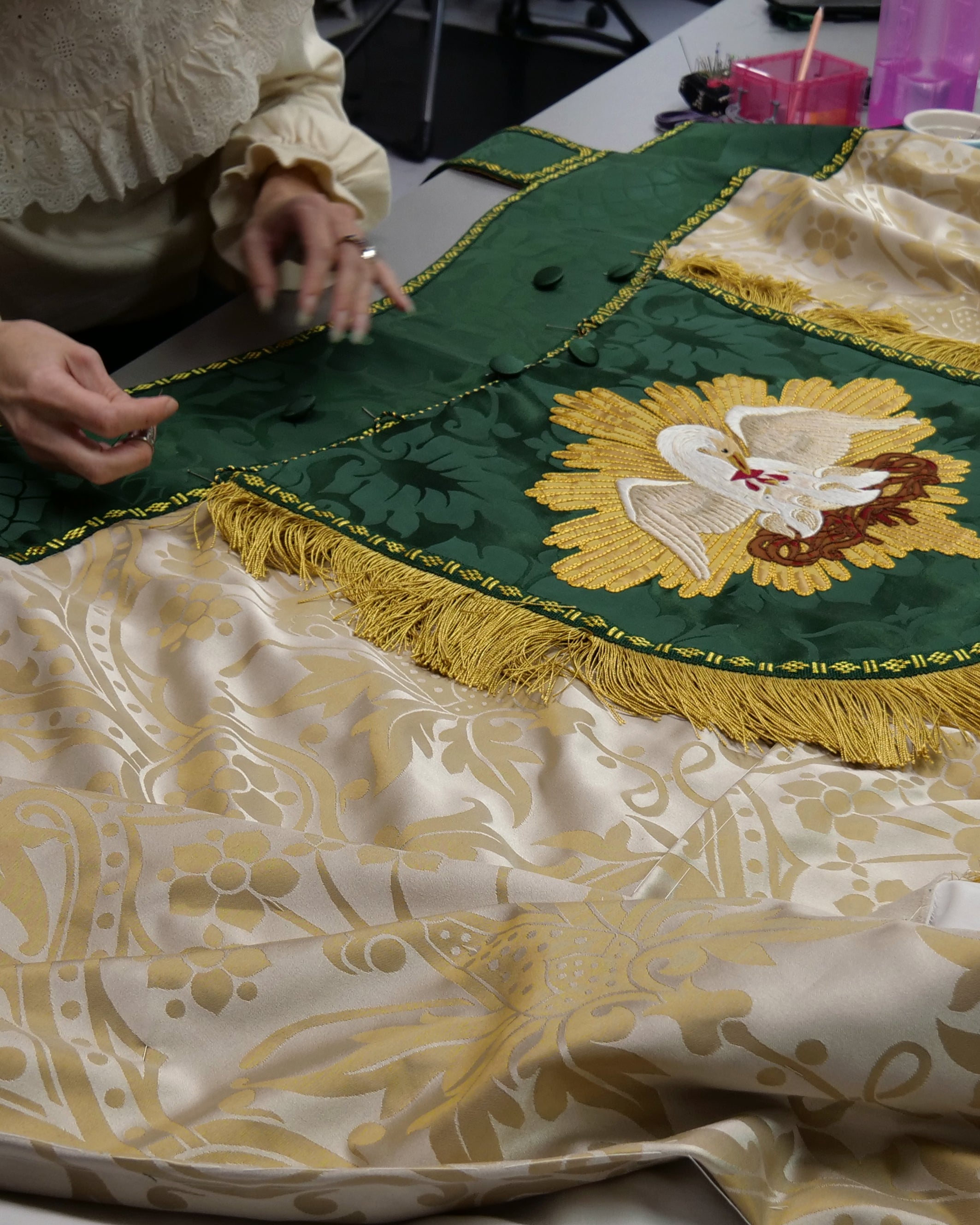 Additional matching vestments (mitres, humeral veils etc) can be made, please get in contact for a quote.