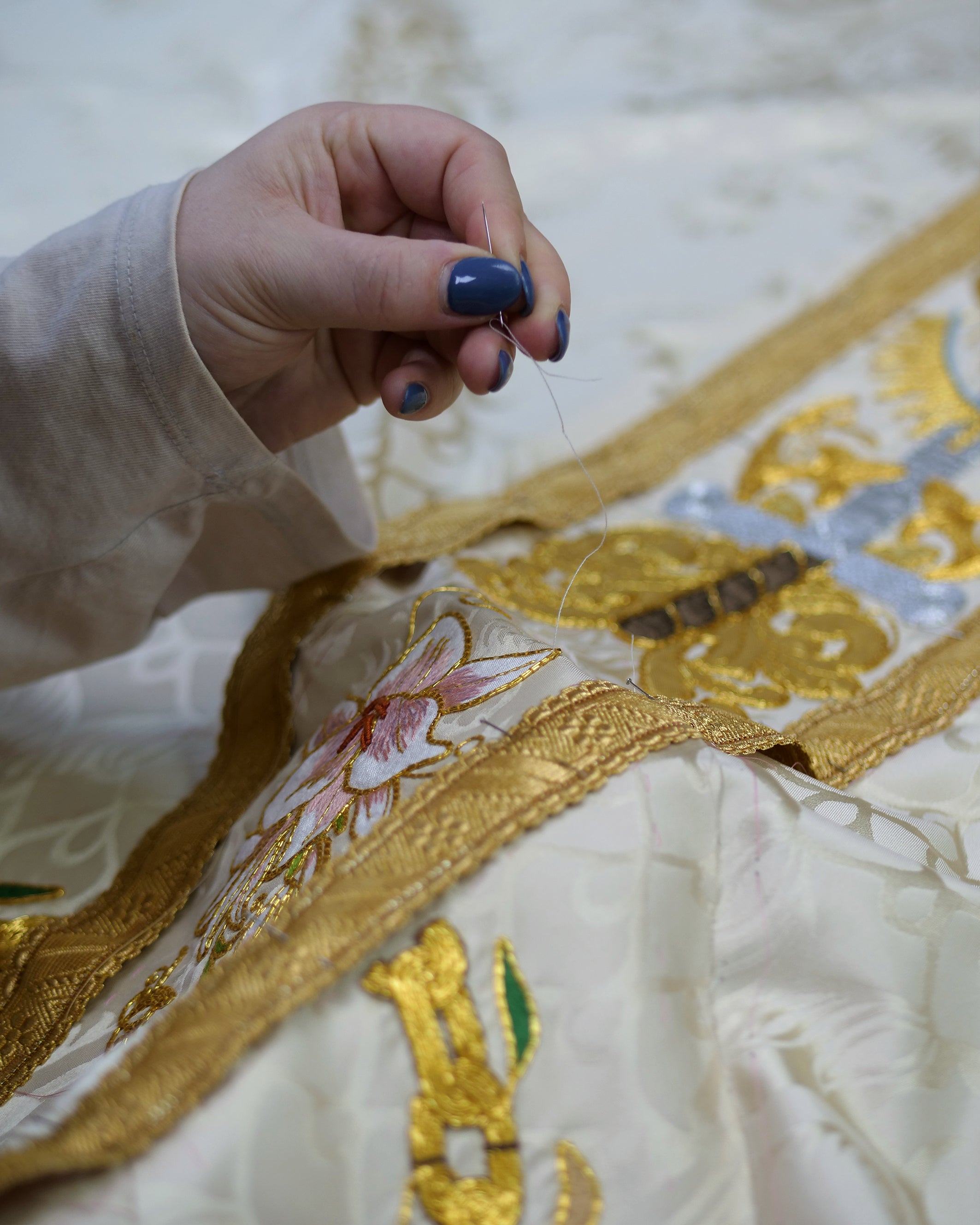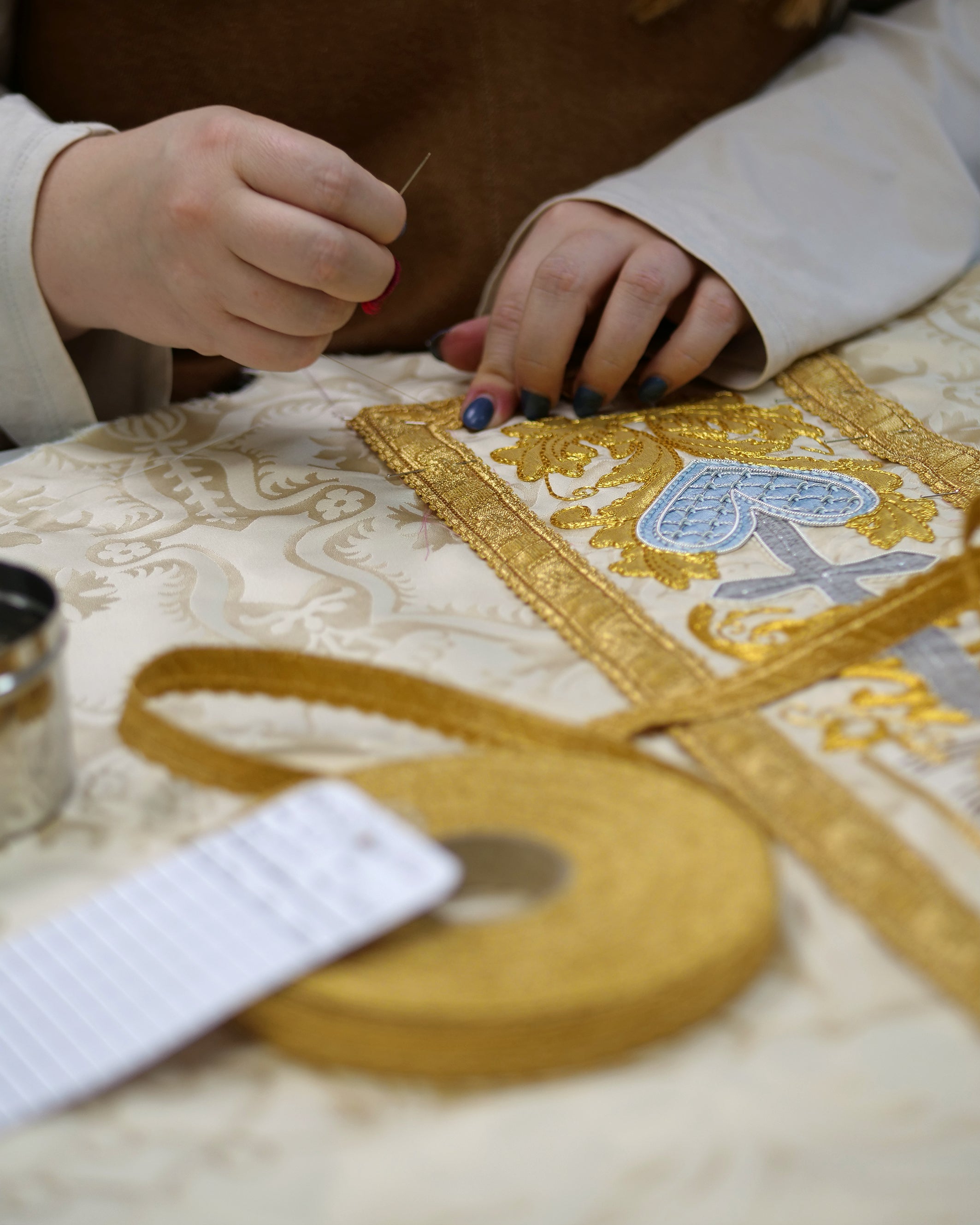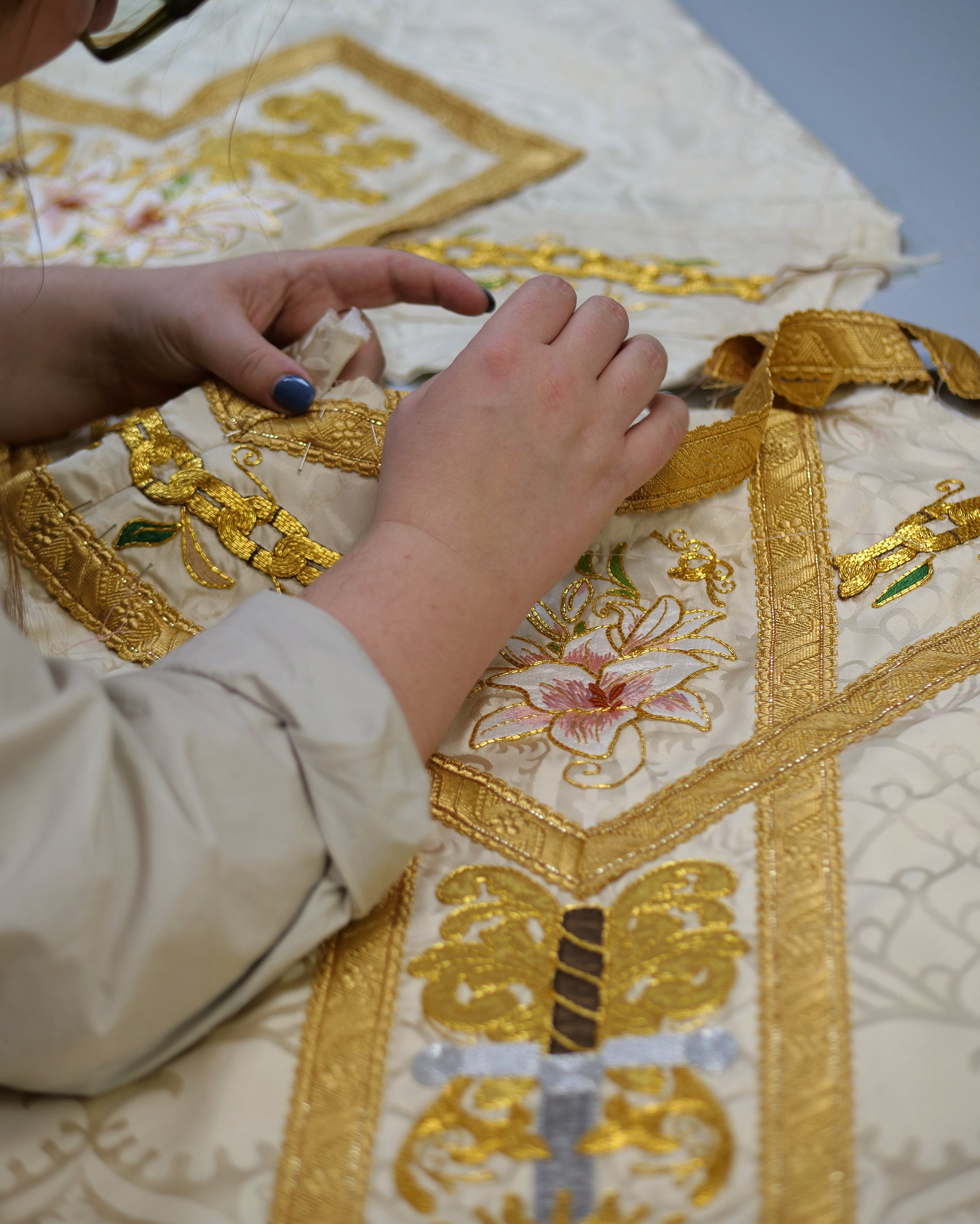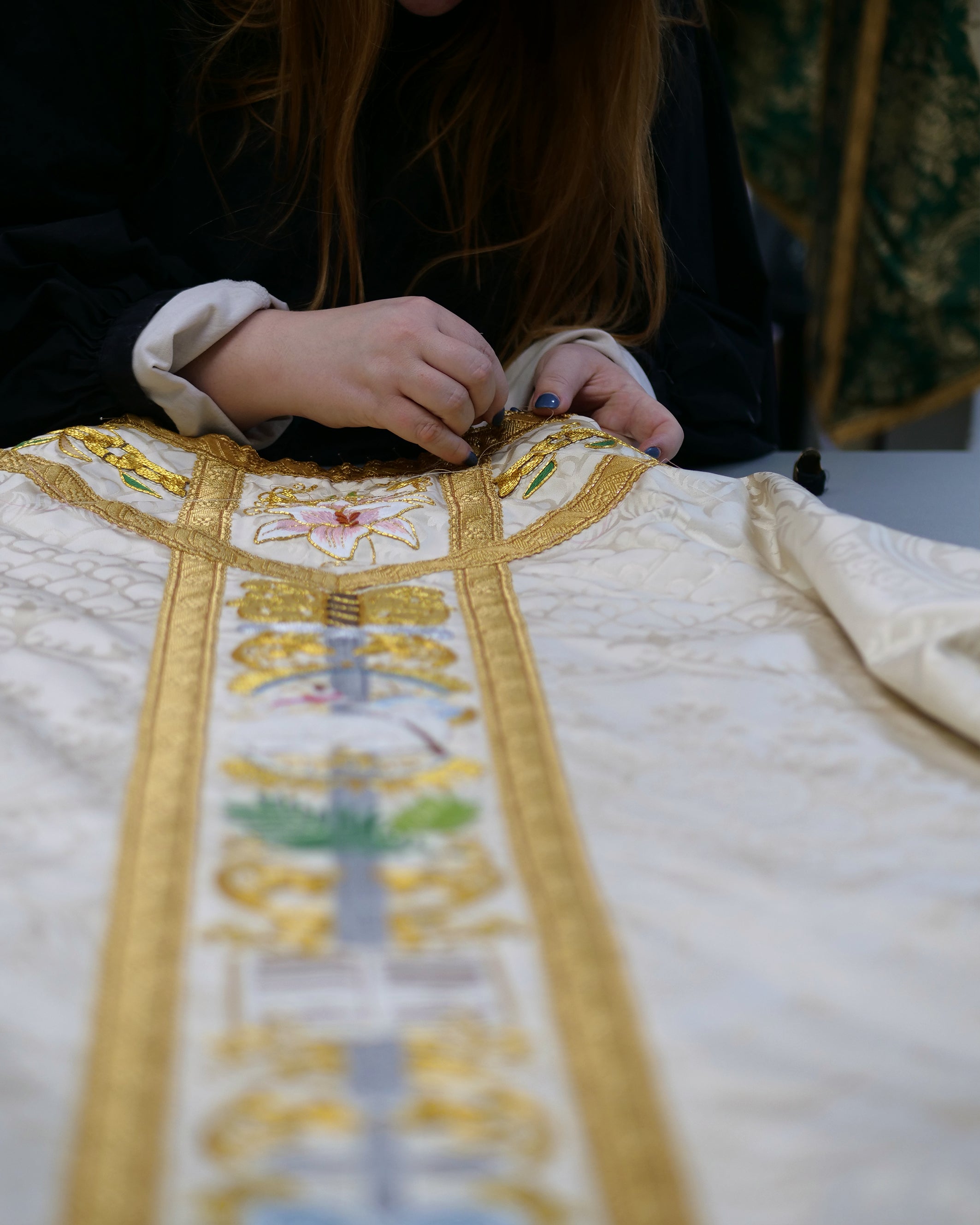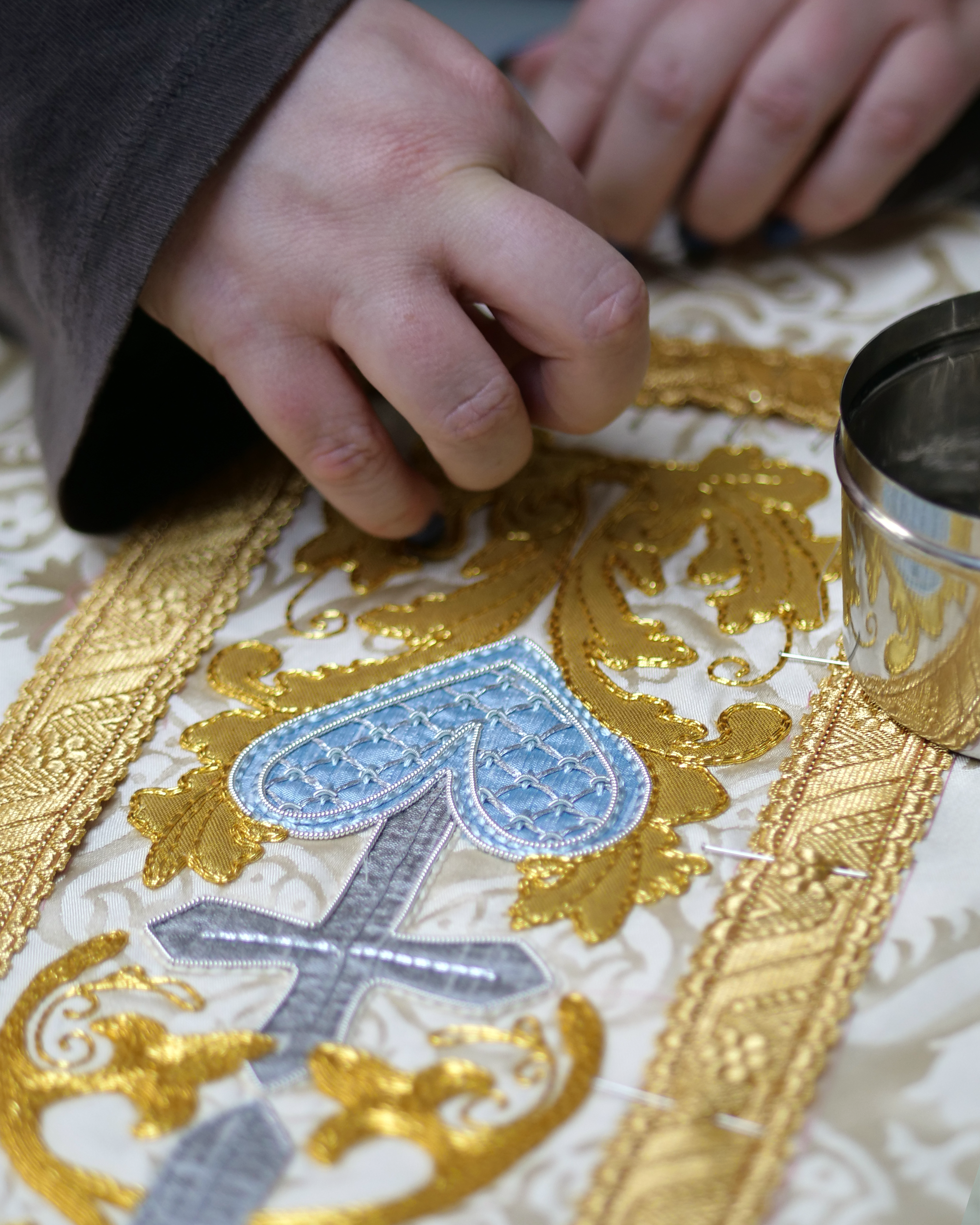 The hand-embroidered orphreys were designed to celebrate All Saints Day.