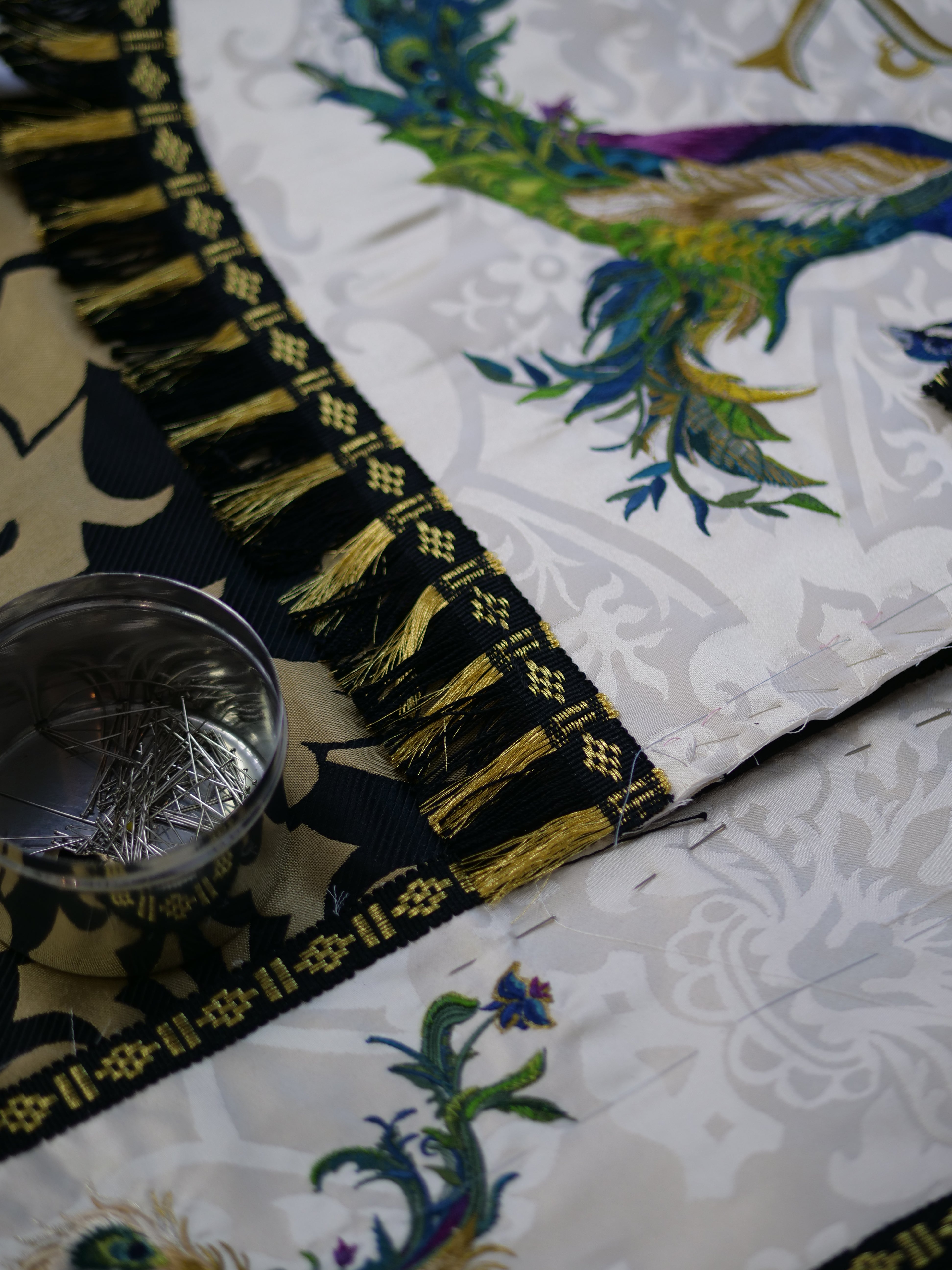 Westminster Cope in Black/Gold 'Van Der Weyden' with Peacock Embroidered Hood and Orphreys